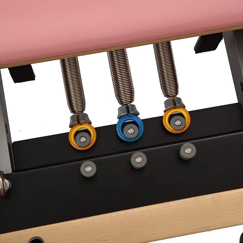 Όπως απεικονίζεται στην εικόνα, αυτή η μονάδα reformer ξεχωρίζει με το κομψό πλαίσιο από ανοιχτόχρωμο ξύλο σφενδάμου και την κομψή ροζ ταπετσαρία της—μια σκόπιμη σχεδιαστική επιλογή που στοχεύει στην αναπτυσσόμενη αγορά οικιακής γυμναστικής με επίκεντρο τις γυναίκες. Ωστόσο, η ομορφιά της είναι κάτι περισσότερο από επιφανειακή. Αυτή η μονάδα έχει σχεδιαστεί για απόδοση, προσαρμοστικότητα και, το πιο σημαντικό, φορητότητα που εξοικονομεί χώρο, λύνοντας βασικά προβλήματα τόσο για τους τελικούς χρήστες όσο και για τους διαχειριστές εγκαταστάσεων.