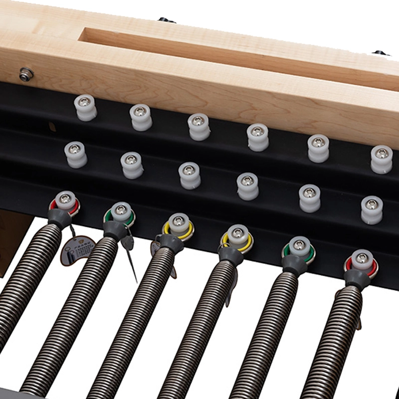 Vzmetni sistem, ki je viden na dnu enote na priloženi sliki, uporablja ponikljane vzmeti iz glasbene žice z različnimi stopnjami upornosti (običajno barvno kodirane za 2 rdeči, 2 zeleni, 1 rumeno). Te vzmeti so preizkušene glede konstantnih krivulj napetosti, kar zagotavlja, da se po tisočih ciklih raztezanja ne strgajo agresivno nazaj ali izgubijo elastičnosti. Za distributerje ta zanesljivost pomeni manj garancijskih zahtevkov in višje ocene zadovoljstva strank s telovadnicami, ki jih dobavljate.
