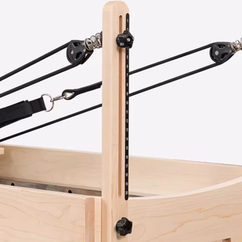 Če pogledate sliko izdelka, boste opazili čisto, svetlo teksturo lesa. Uporabljamo vrhunski masivni javor, ne furnirja ali kompozitnih polnil. V svetu Veleprodaja prilagojenih Studio Logo Maple Pilates Reformers, izbira materiala je odločilni dejavnik za dolgo življenjsko dobo.