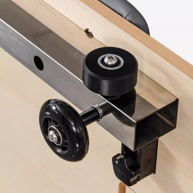 Reformer je definiran po svoji “vožnji”. Če se voziček vleče ali trka, stranka izgubi pozornost. Naš proizvodni proces se močno osredotoča na sistem tirnic. Voziček drsi po prilagojenem 8-kolesnem sistemu vzmetenja z natančnimi ležaji z oceno ABEC. To zagotavlja občutek “lebdenja” brez trenja, ki je bistvenega pomena za artikulacijo, potrebno pri klasičnem in sodobnem pilatesu.